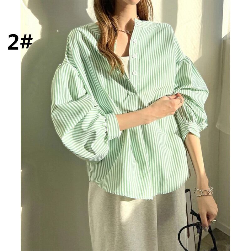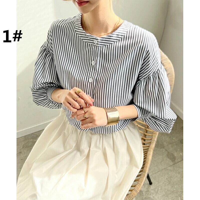 ブラウス 長袖シャツ トップス 人気シャツ ストライプ レディース ハブスリープ 気質
