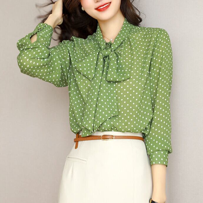 ブラウス シャツ 長袖ブラウス トップス レディース ドット柄 オシャレ 気質