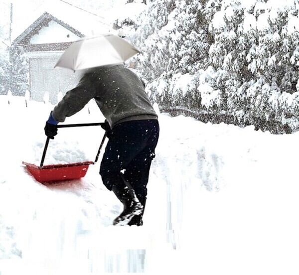 両手が使え作業がはかどる帽子型のかぶる傘。