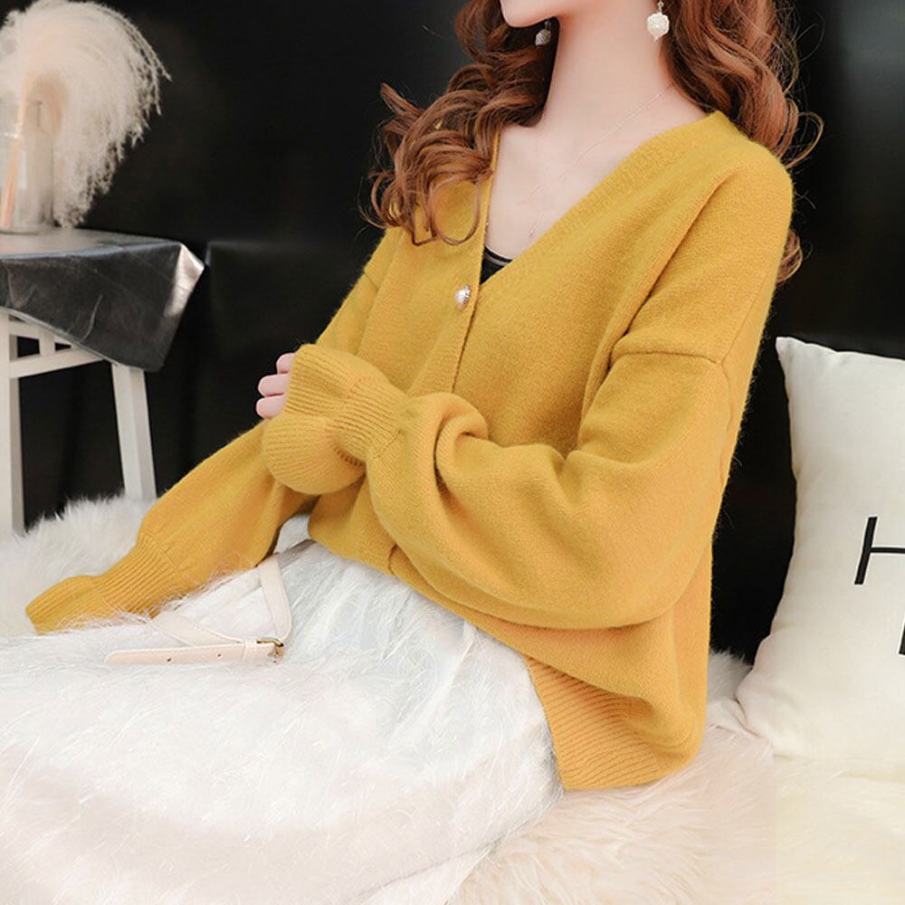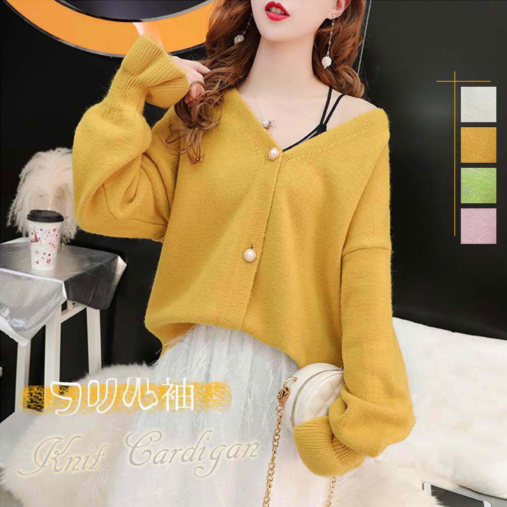 レディース カーディガン ドロップショルダー キャンディスリーブ vネック ニットセーター 前開き 長袖 羽織もの 秋