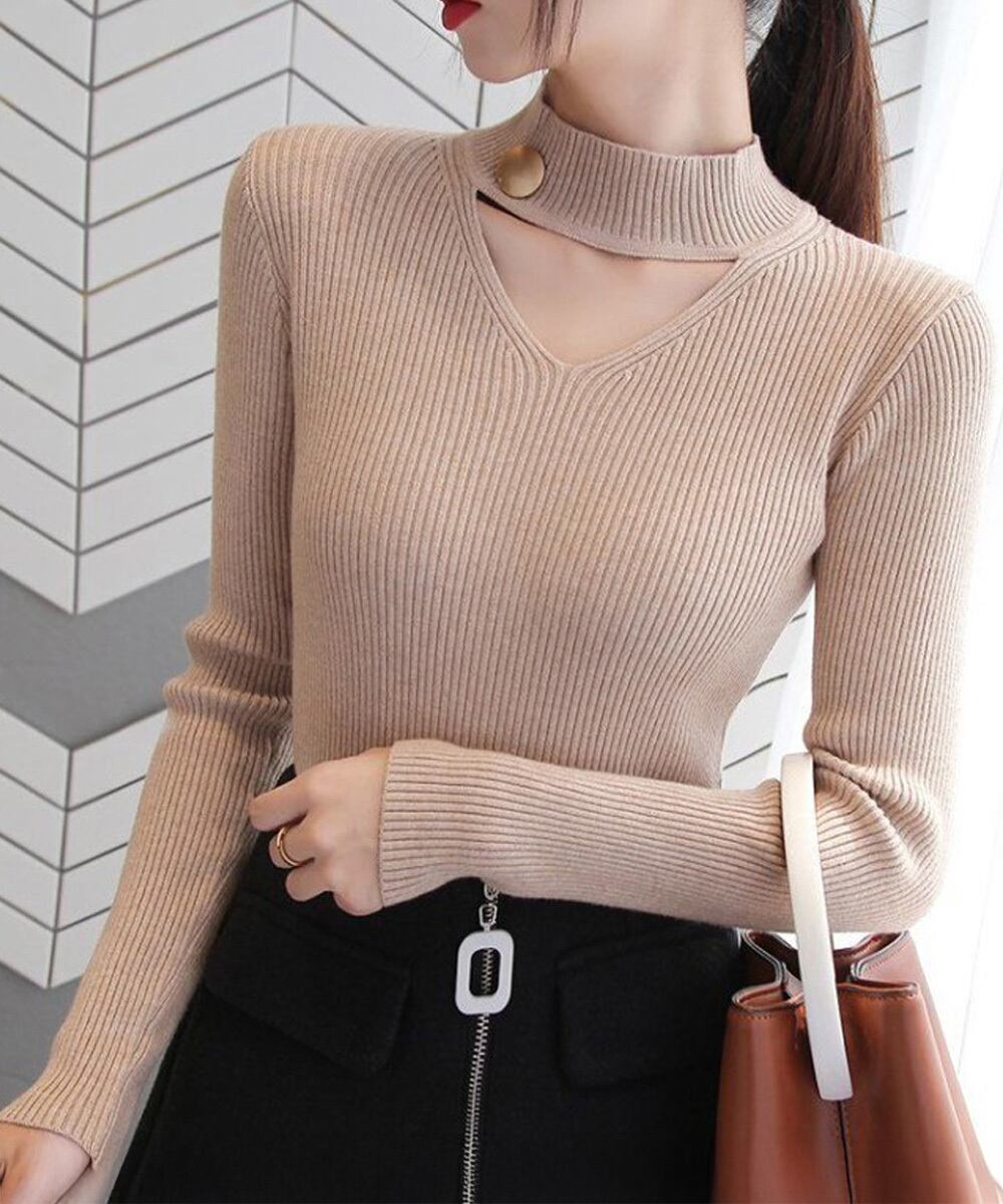 大人女性の魅力を演出してくれるVネックチョーカー風ニットトップス