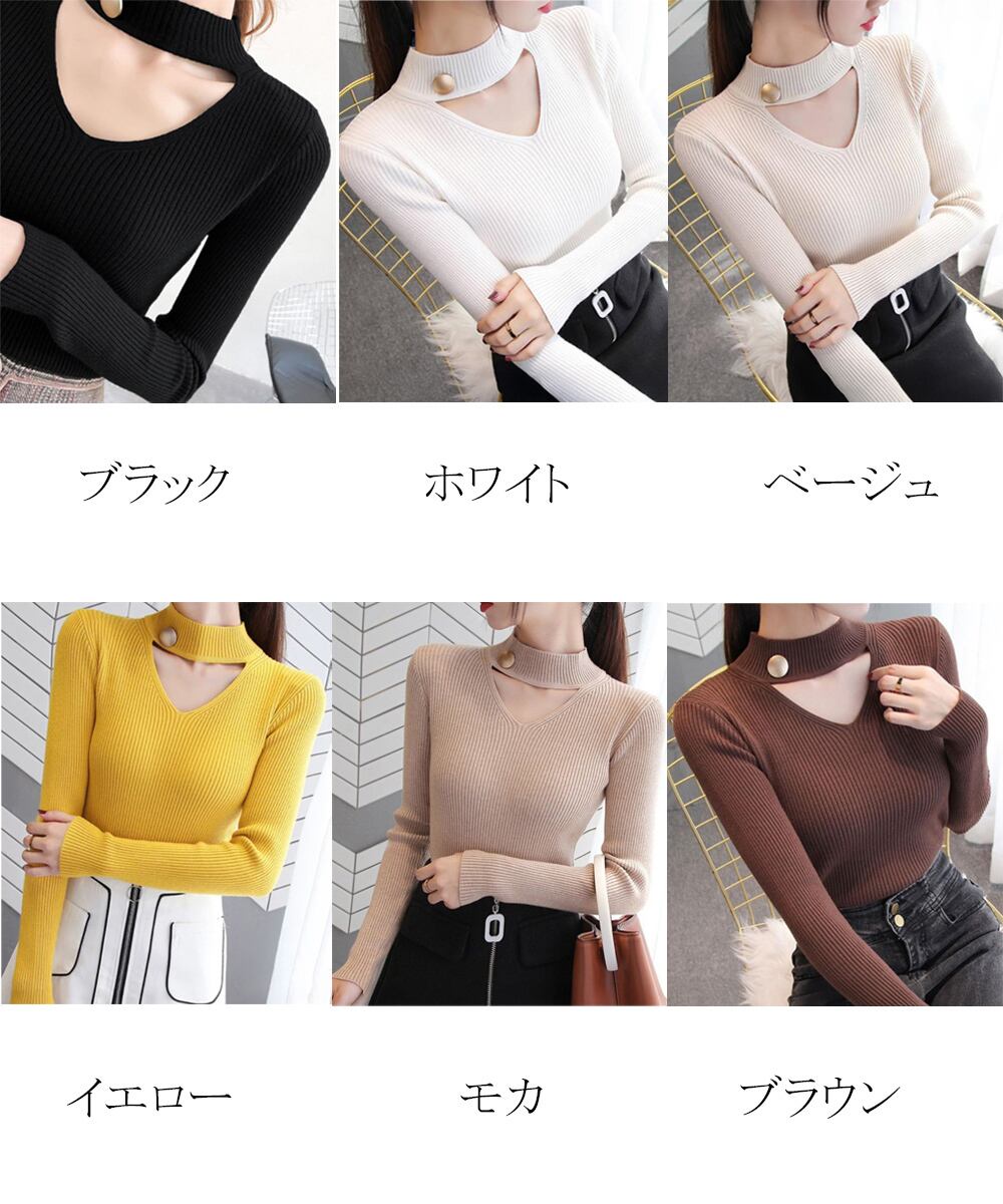 チョーカー風ニット 着やせ トップス