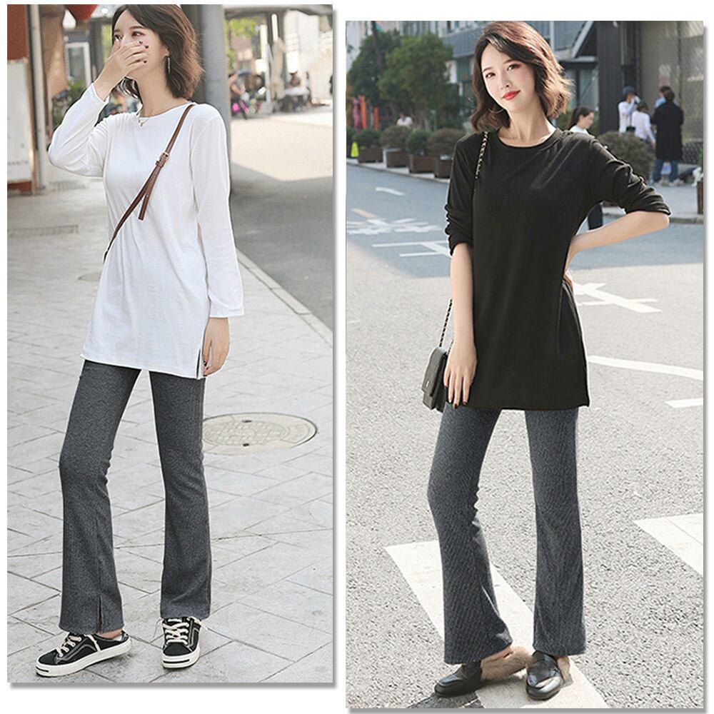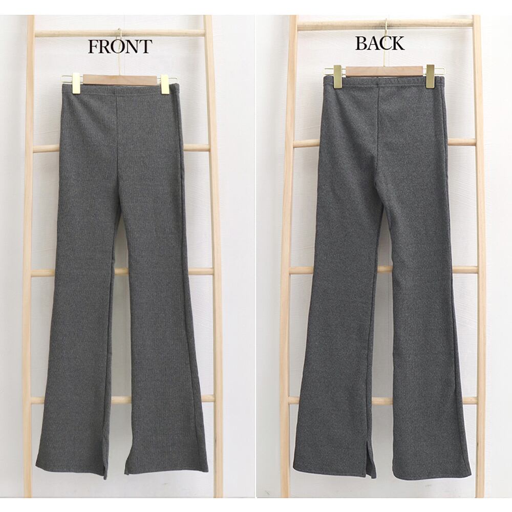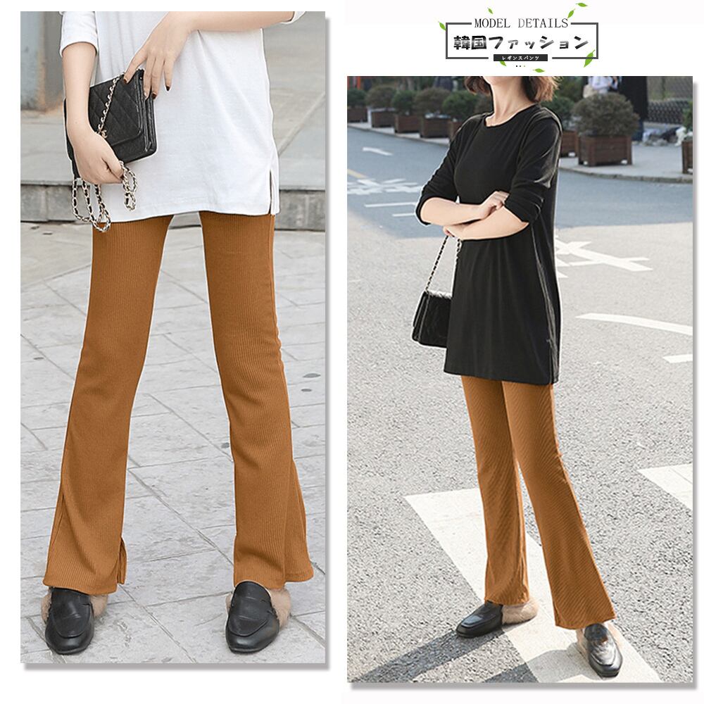 選べる2タイプ あったか フレアレギンス きれいめ セミフレアパンツ サイドスリット ボトムス カジュアル らくちん