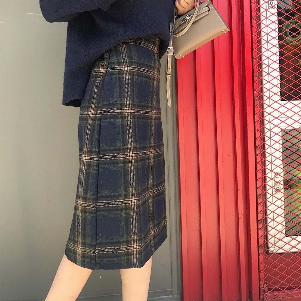 女性らしく綺麗なシルエットを生み出すミディアム丈で、魅力的なチェックスカート