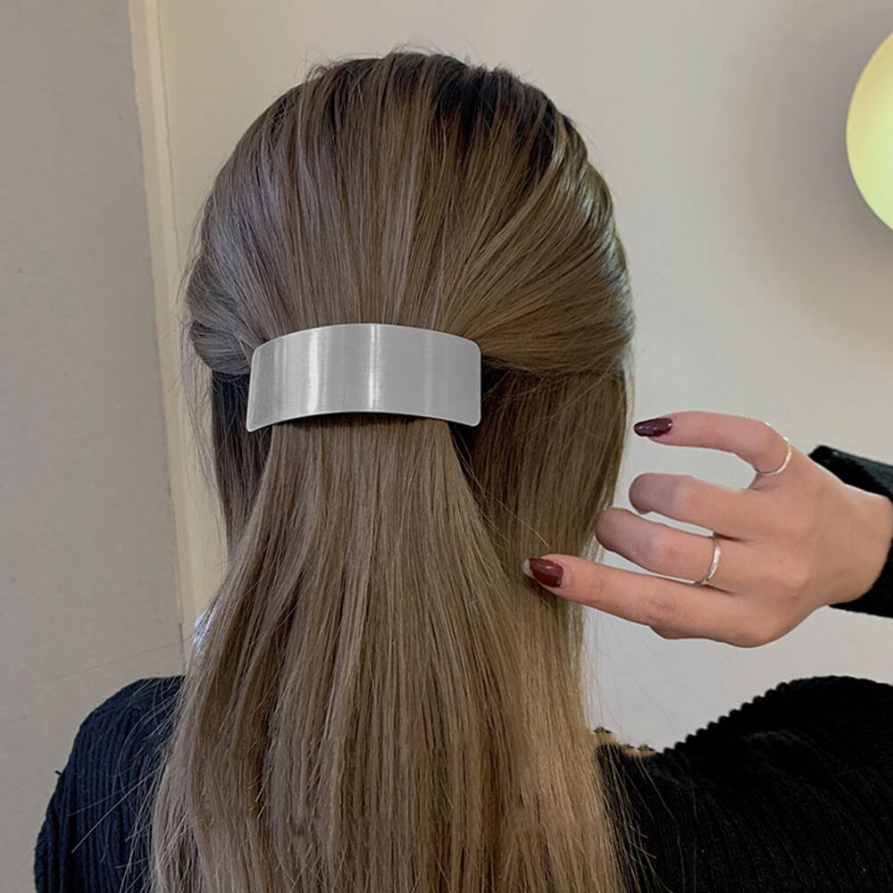 シンプルながらエレガントで女性らしい印象を与える優雅なカーブデザインのメタルバレッタ