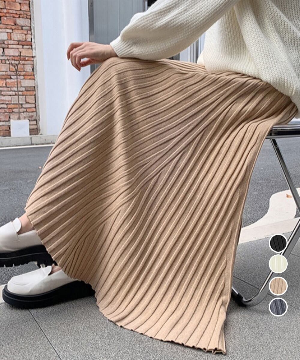 動きに合わせて美しく揺れるリブ編みのロングスカート