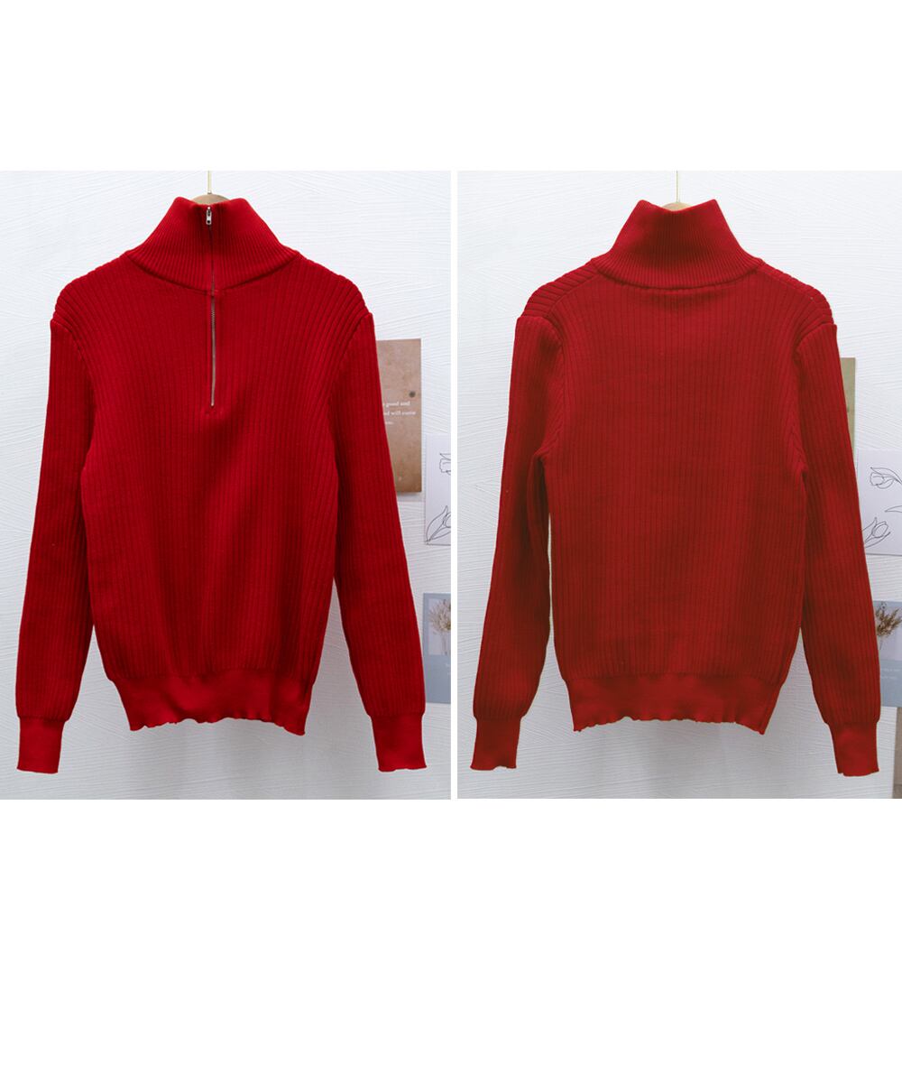 レディーストップス ハイネック 長袖 ZIPニットセーター お洒落 ニットウェア 通勤通学 リブニット