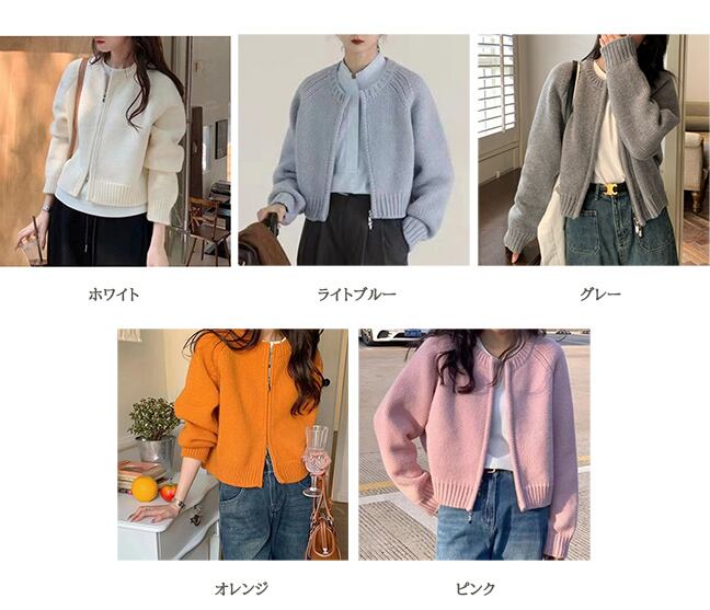 秋冬新作 ジップアップカーディガン ニット ダブルジップ トップス ピンク