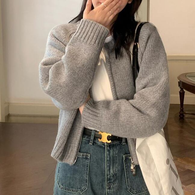 ・今季トレンドのダブルジップデザインのニットカーディガン。