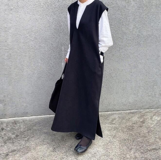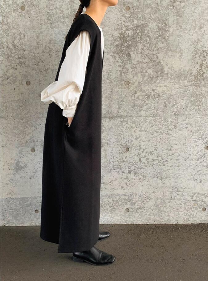 シンプルだけど細部にこだわった大人ベストワンピース。