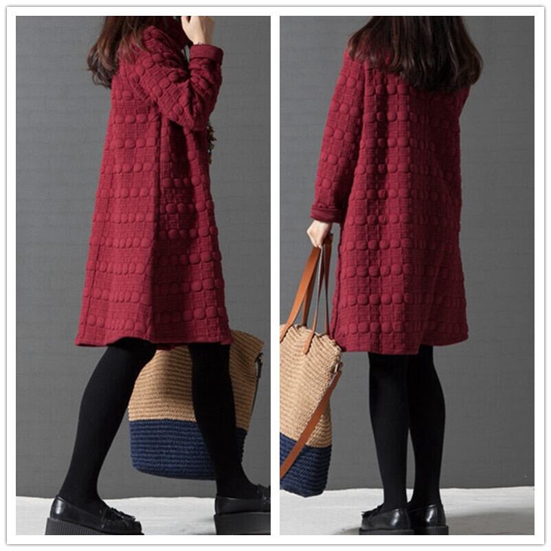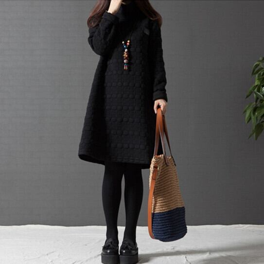 ワンピース レディース 秋冬 ミドル丈 厚手 長袖 ハイネック 体型カバー ゆったり