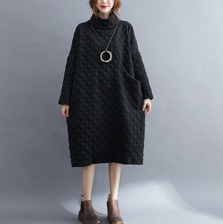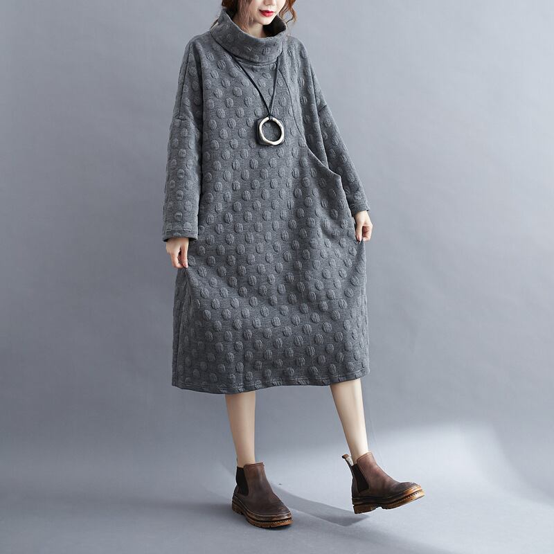 秋冬新作 ワンピース レディース ロングワンピース 厚手 長袖 ハイネック ロング丈 体型カバー ゆったり