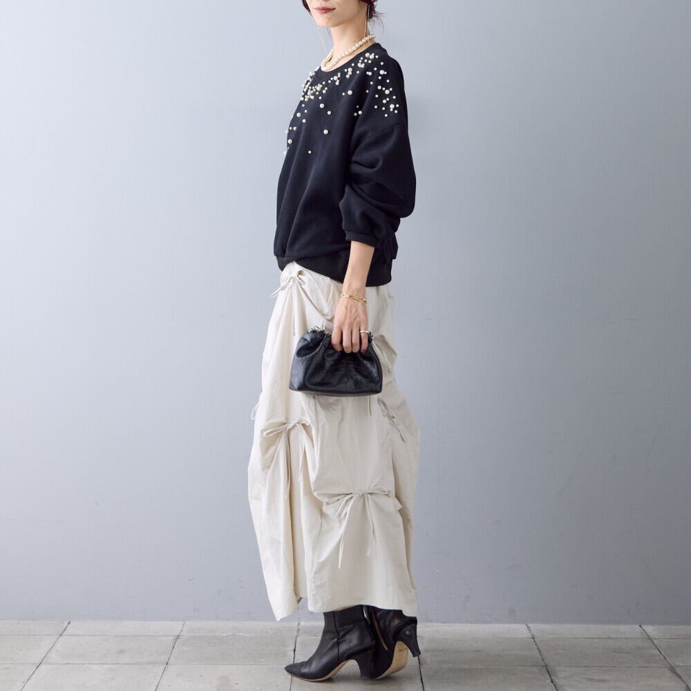 プルオーバー トップス レディース 長袖トップス ラウンドネック パール きれいめ 気質 オシャレ